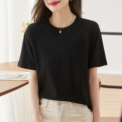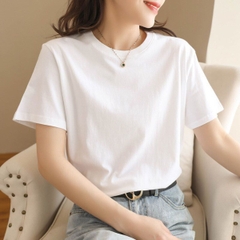 Áo thun nữ trơn cổ tròn tay ngắn dáng suông đen trắng cao cấp,áo phông nữ cộc tay cotton basic chất vải đẹp ELY207R