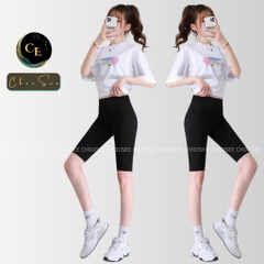 Quần legging nữ lửng ELY vải thun cao cấp biker nữ đùi ngố đồ mặc nhà dáng ôm bó lưng cao tập gym yoga bigsize ELY233